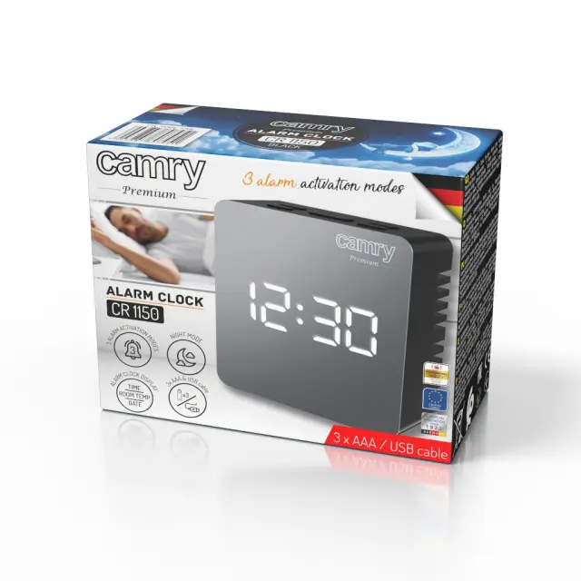 Alarma CR 1150 je naprava z veliko uporabnimi funkcijami, ki jih lahko izberete, odvisno od vaših potreb. Najprej ima 3 načine vklopa budilke. Velika prednost je jasen LED zaslon, iz katerega lahko v vseh svetlobnih pogojih enostavno preberete uro in temperaturo v sobi. Alarm se napaja iz električnega omrežja, ima tudi vgrajeno napajanje baterije. Alarm prikazuje temperaturo v sobi.