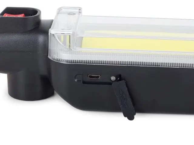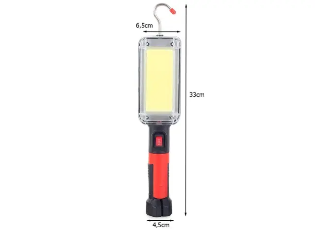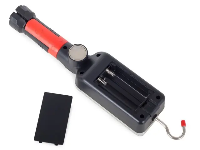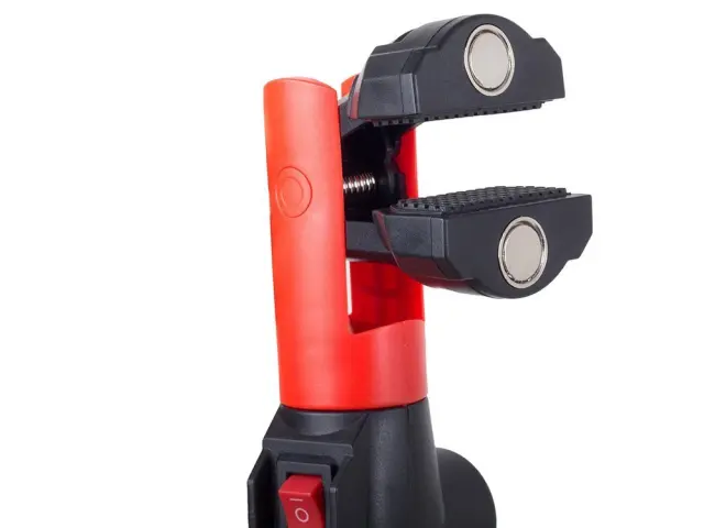 Ima vgrajena 2 močna magneta nameščena na nastavljivem podstavku in 1 na zadnji strani svetilke