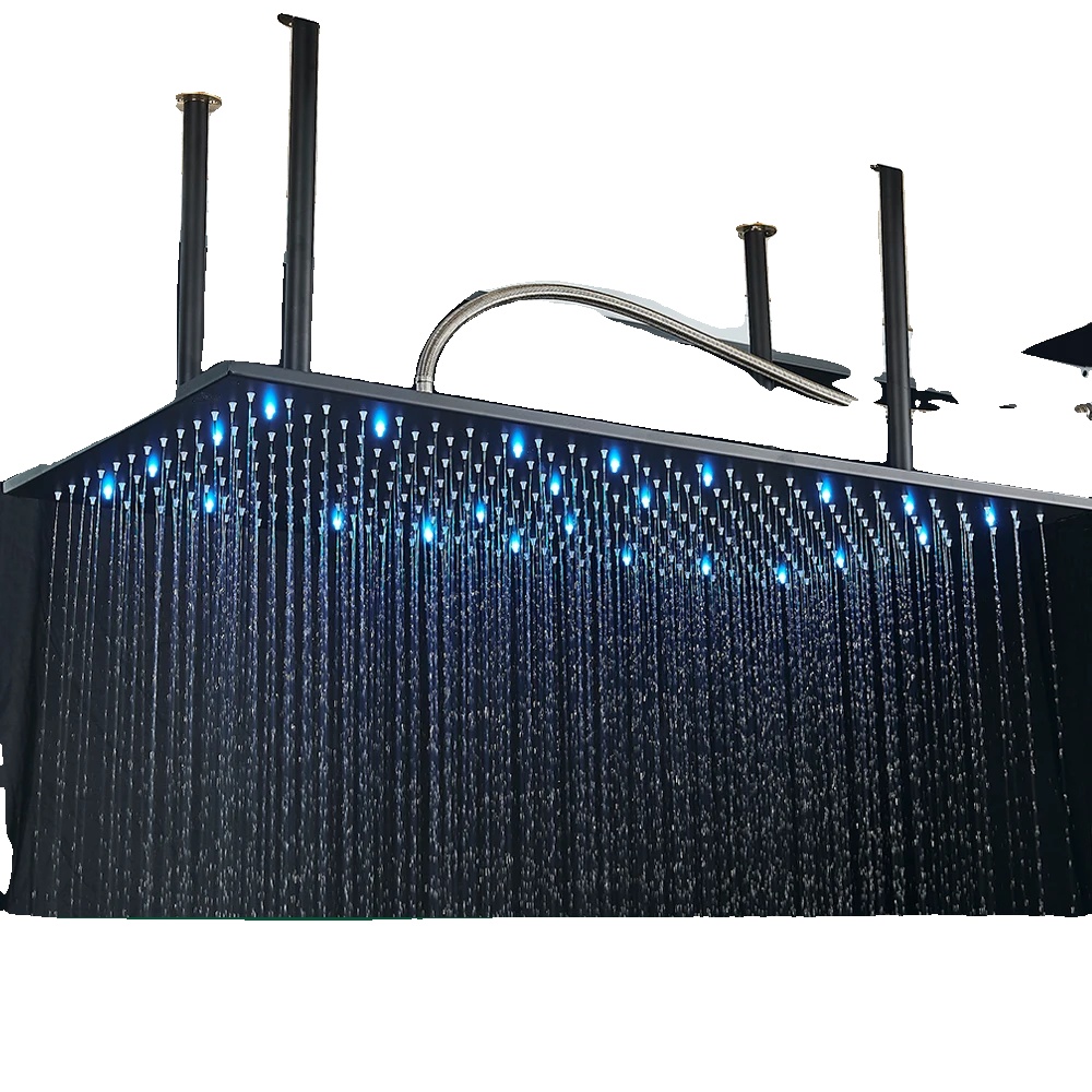 LED deževna tuš glava, stropno montirana, pametno napajanje z vodo, črna LED