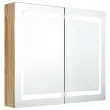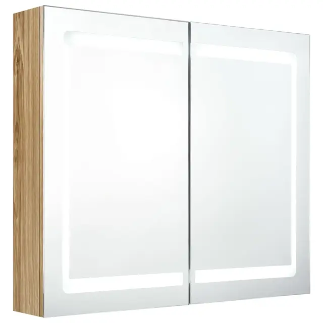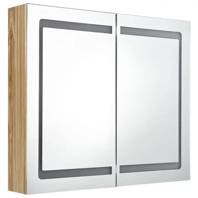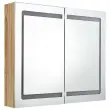 LED Kopalniška omarica - Kopalniški kabinet z ogledalom hrast 80x12x68 cm