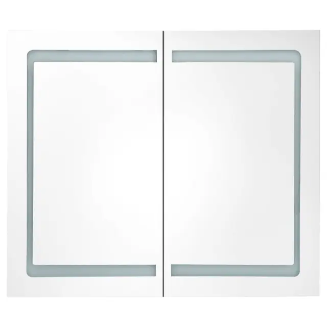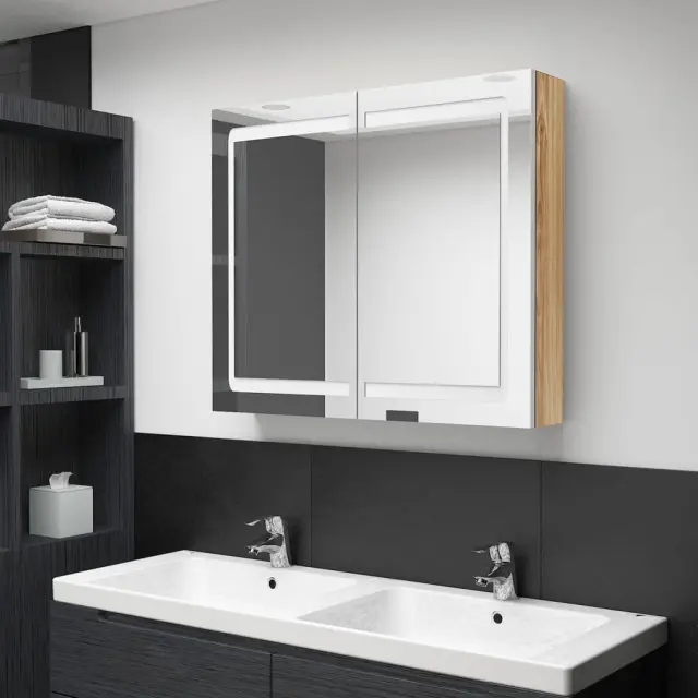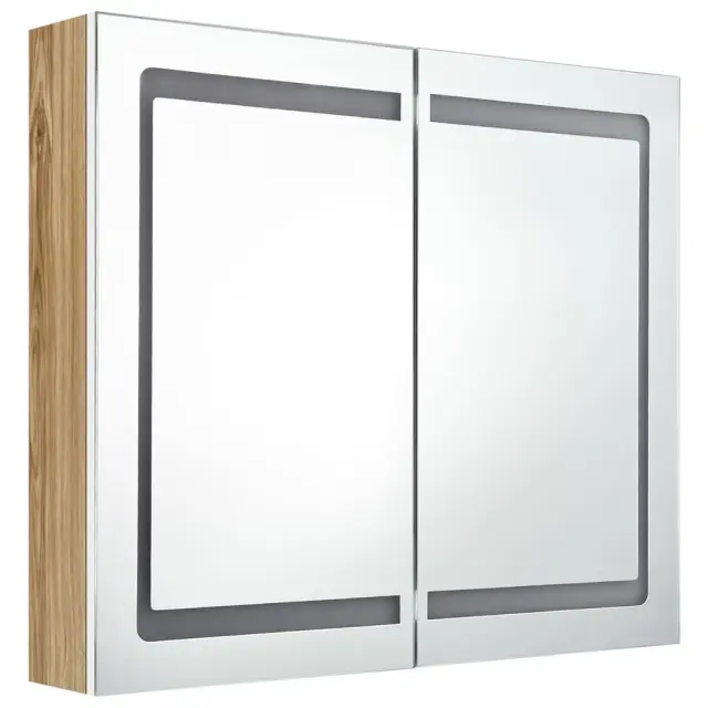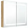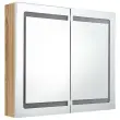 LED Kopalniška omarica - Kopalniški kabinet z ogledalom bela in hrast 80x12x68 cm