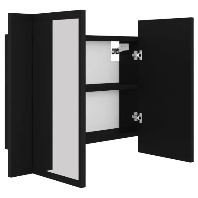 LED Kopalniška omarica - Kopalniški kabinet z ogledalom črna 60x12x45 cm akril