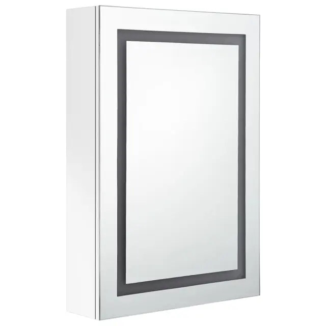 LED Kopalniška omarica - Kopalniški kabinet z ogledalom sijoče bela 50x13x70 cm