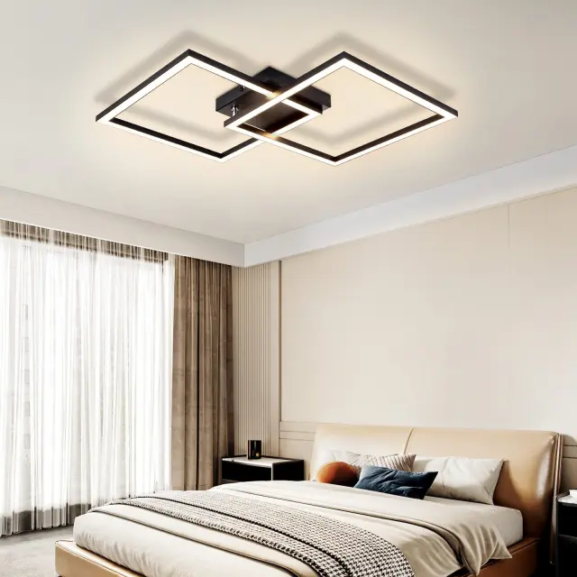 LED Nettlife stropna svetilka 24W, toplo bela 3000K, moderna črna za dnevno sobo, kuhinjo, spalnico, kvadratna za hodnik