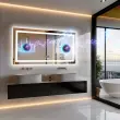 Sodobna eleganten dizajn: Eleganten pravokoten oblik in dvojni LED svetlobni trakovi ne le izboljšajo vidnost, temveč dodajo tudi pridih sofisticiranosti vaši kopalniški dekoraciji.
