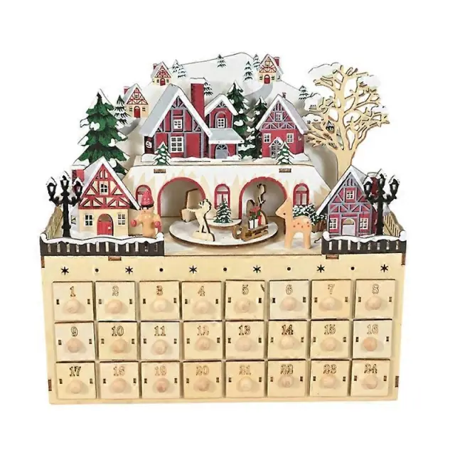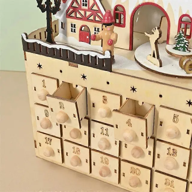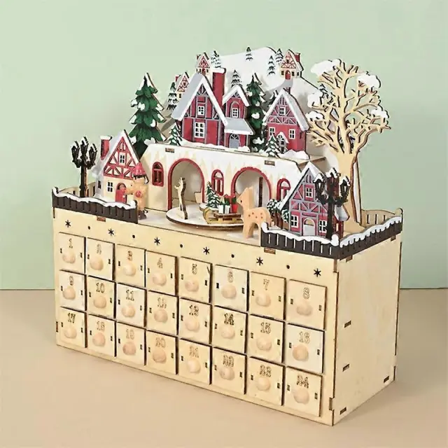 LED osvetljen božični adventni koledar Privlačen osvetljen adventni koledar s 24 predali za festivalska odštevanja