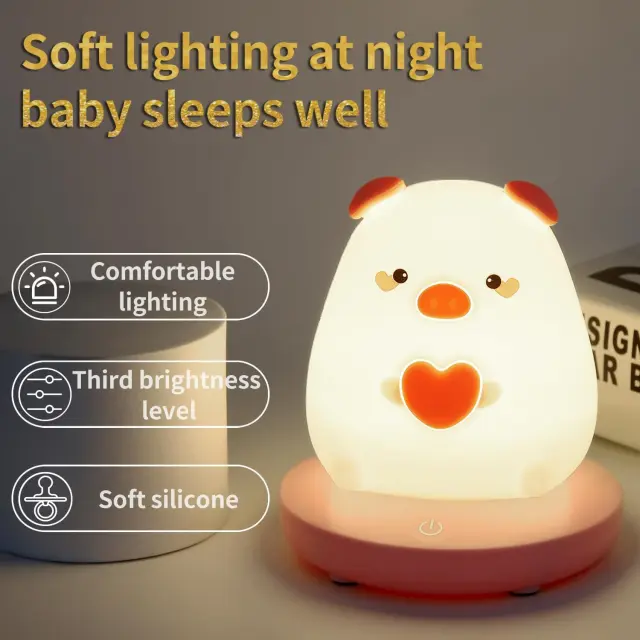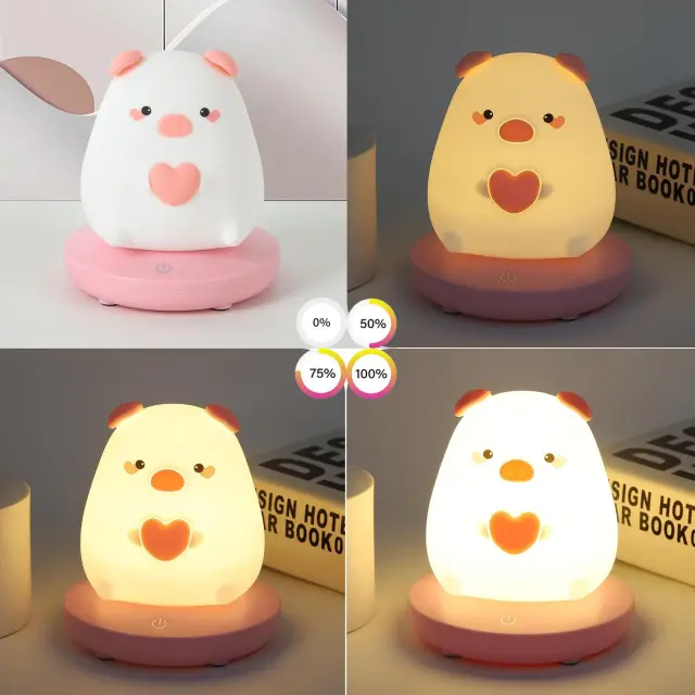 LED otroška nočna lučka, silikonska nočna lučka Pujsek, zatemnjena otroška nočna lučka, LED nočna lučka za polnjenje za otroško spalnico, darila za ot