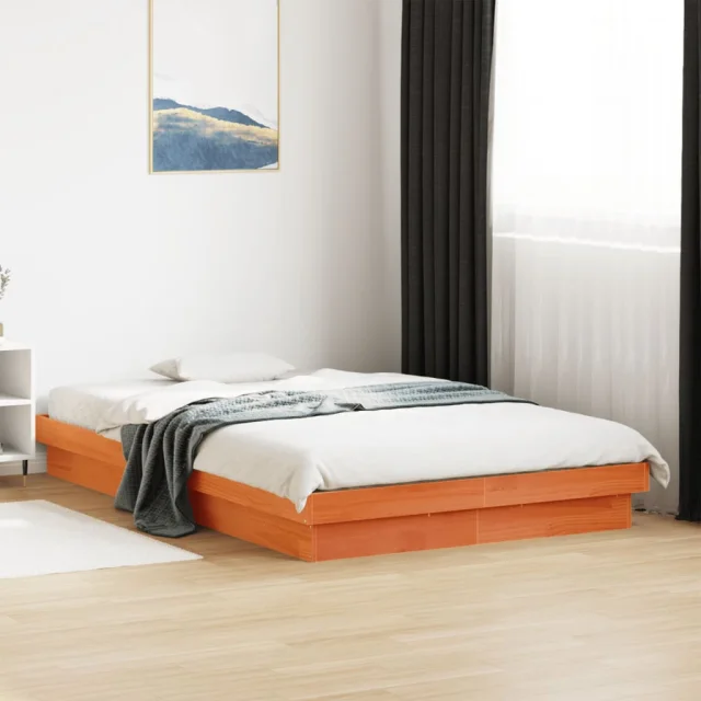 LED Posteljni okvir - Dvoposteljna postelja - Zakonska postelja voščeno rjav 120x190 cm trdna borovina