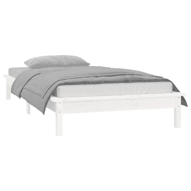 LED Posteljni okvir - Enojna postelja - Postelja za odrasle bel 100x200 cm trden les