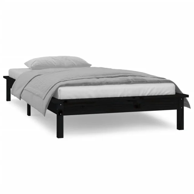 LED Posteljni okvir - Enojna postelja - Postelja za odrasle črn 75x190 cm trden les