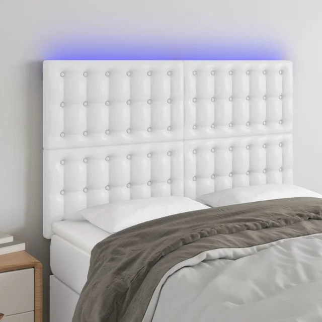 LED Posteljno vzglavje - Vzglavna omarica - Nočna omarica belo 144x5x118/128 cm umetno usnje