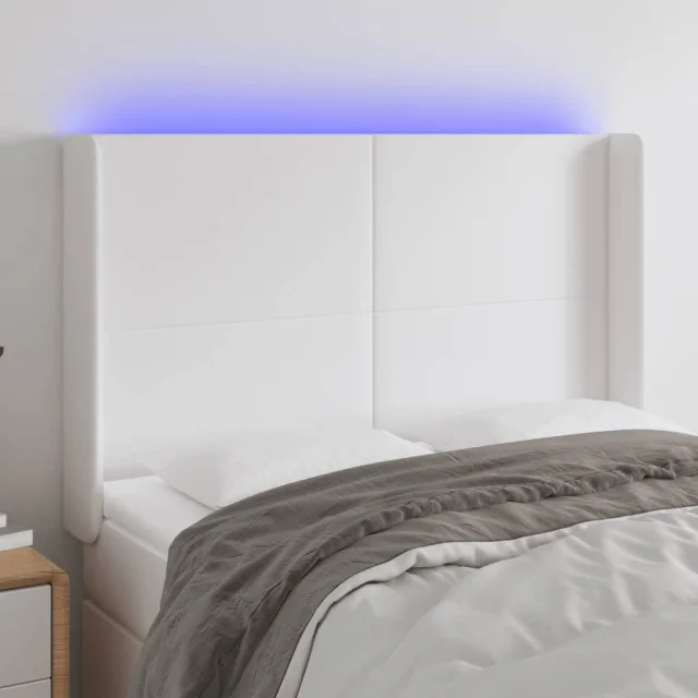 LED Posteljno vzglavje - Vzglavna omarica - Nočna omarica belo 147x16x118/128 cm umetno usnje
