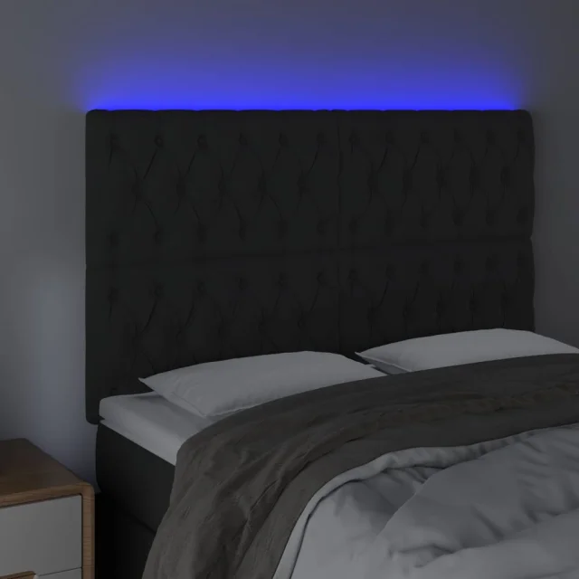 LED Posteljno vzglavje - Vzglavna omarica - Nočna omarica črno 144x7x118/128 cm žamet