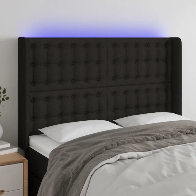 LED Posteljno vzglavje - Vzglavna omarica - Nočna omarica črno 147x16x118/128 cm blago