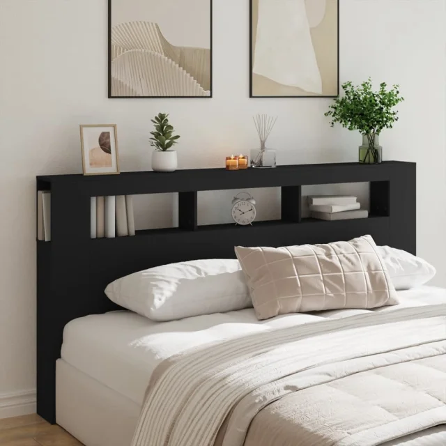 LED Posteljno vzglavje - Vzglavna omarica - Nočna omarica črno 200x18,5x103,5 cm inženirski les