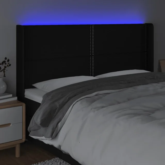 LED Posteljno vzglavje - Vzglavna omarica - Nočna omarica črno 203x16x118/128 cm blago