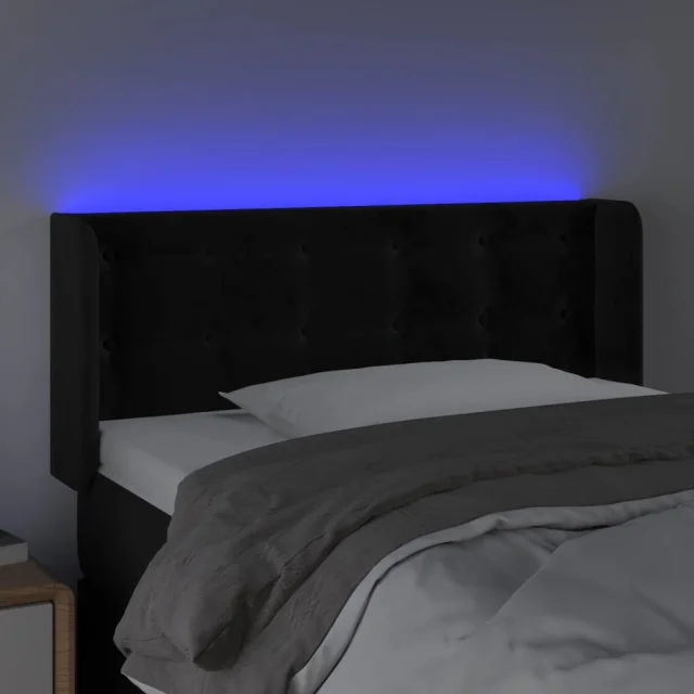 LED Posteljno vzglavje - Vzglavna omarica - Nočna omarica črno 93x16x78/88 cm žamet