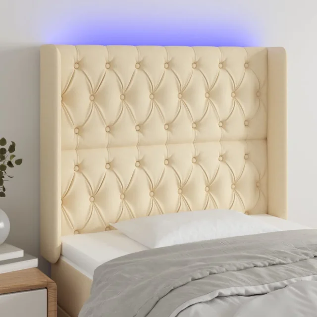 LED Posteljno vzglavje - Vzglavna omarica - Nočna omarica krem 103x16x118/128 cm blago