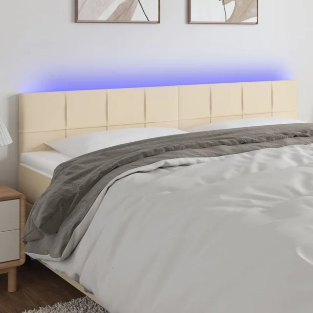 LED Posteljno vzglavje - Vzglavna omarica - Nočna omarica krem 180x5x78/88 cm blago