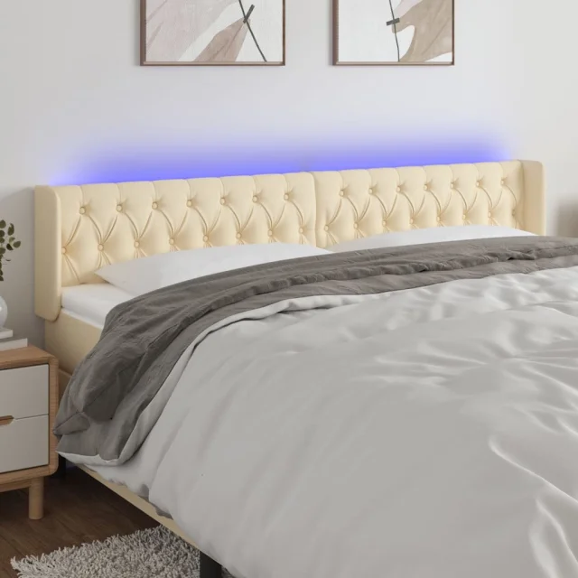 LED Posteljno vzglavje - Vzglavna omarica - Nočna omarica krem 203x16x78/88 cm blago
