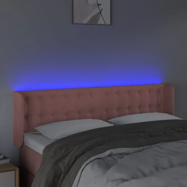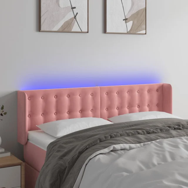 LED Posteljno vzglavje - Vzglavna omarica - Nočna omarica roza 147x16x78/88 cm žamet