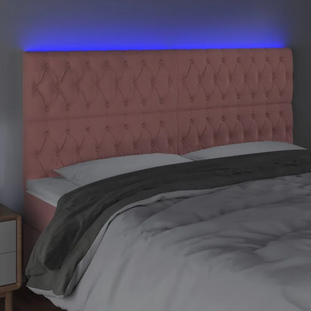 LED Posteljno vzglavje - Vzglavna omarica - Nočna omarica roza 200x7x118/128 cm žamet