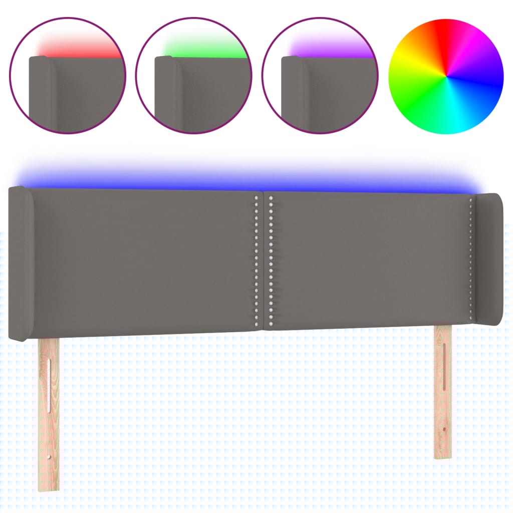 LED Posteljno vzglavje - Vzglavna omarica - Nočna omarica sivo 147x16x78/88 cm umetno usnje