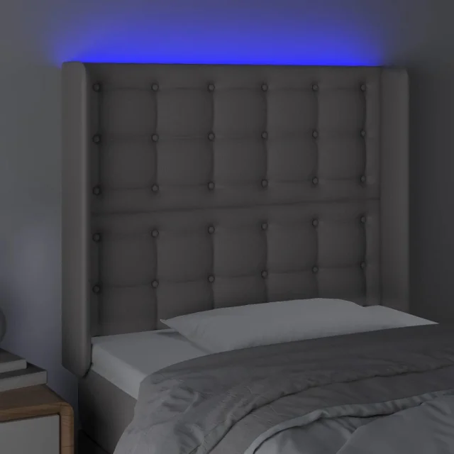 LED Posteljno vzglavje - Vzglavna omarica - Nočna omarica sivo 83x16x118/128 cm umetno usnje