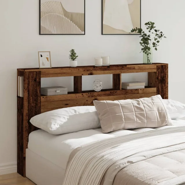 LED Posteljno vzglavje - Vzglavna omarica - Nočna omarica starinski les 180x18,5x103,5 cm inž. les