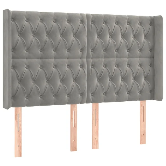 LED Posteljno vzglavje - Vzglavna omarica - Nočna omarica svetlo sivo 147x16x118/128 cm žamet