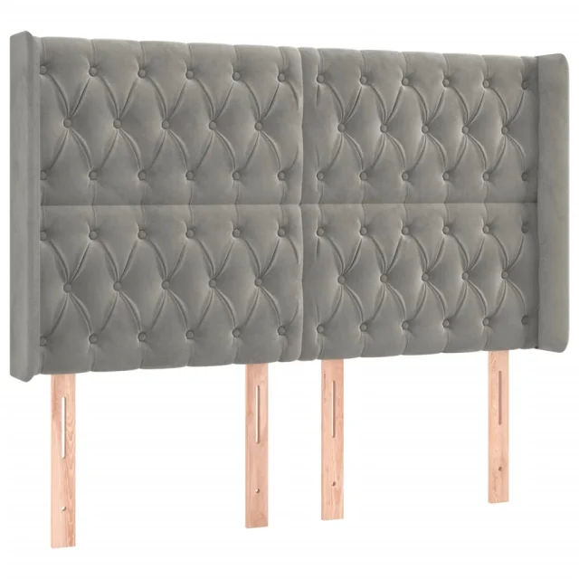 LED Posteljno vzglavje - Vzglavna omarica - Nočna omarica svetlo sivo 163x16x118/128 cm žamet