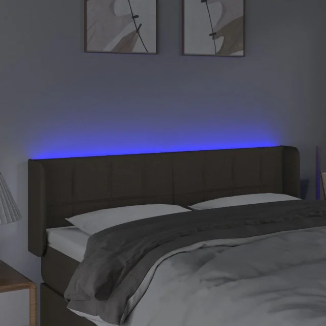 LED Posteljno vzglavje - Vzglavna omarica - Nočna omarica taupe 147x16x78/88 cm blago