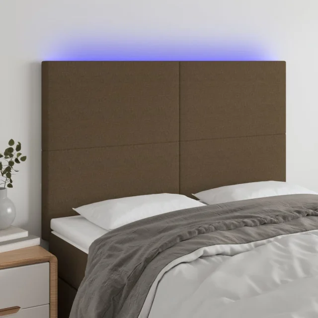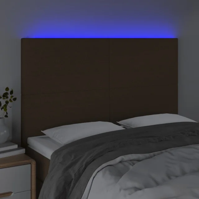 LED Posteljno vzglavje - Vzglavna omarica - Nočna omarica temno rjavo 144x5x118/128 cm blago