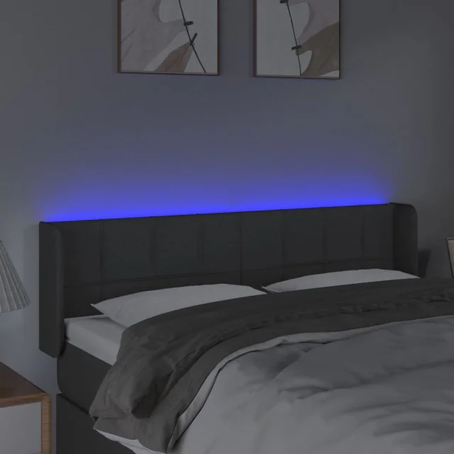 LED Posteljno vzglavje - Vzglavna omarica - Nočna omarica temno sivo 147x16x78/88 cm blago