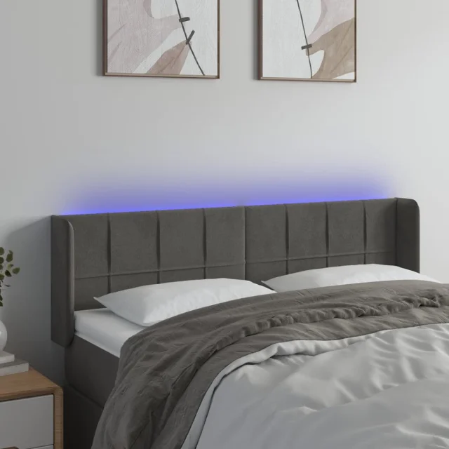 LED Posteljno vzglavje - Vzglavna omarica - Nočna omarica temno sivo 147x16x78/88 cm žamet