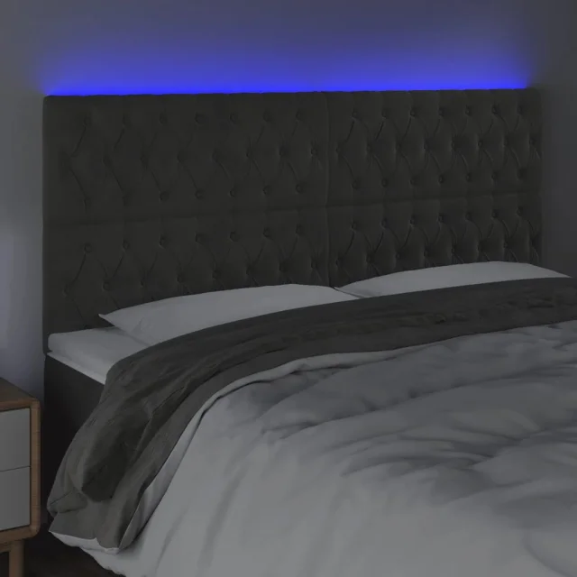 LED Posteljno vzglavje - Vzglavna omarica - Nočna omarica temno sivo 200x7x118/128 cm žamet
