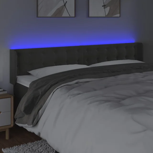 LED Posteljno vzglavje - Vzglavna omarica - Nočna omarica temno sivo 203x16x78/88 cm žamet