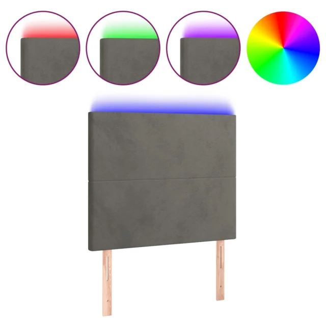 LED Posteljno vzglavje - Vzglavna omarica - Nočna omarica temno sivo 90x5x118/128 cm žamet