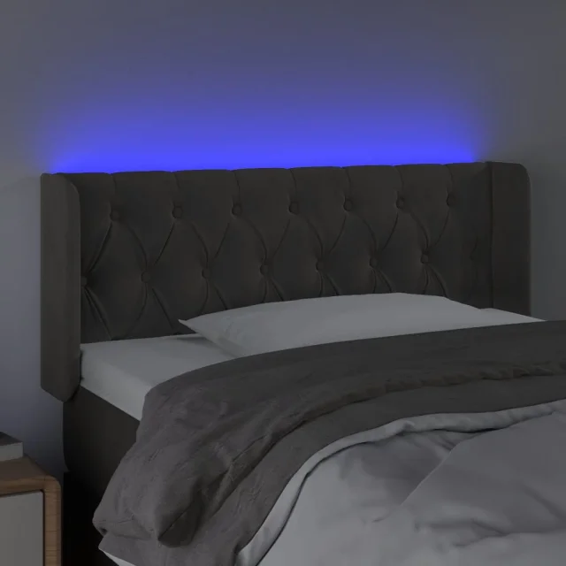 LED Posteljno vzglavje - Vzglavna omarica - Nočna omarica temno sivo 93x16x78/88 cm žamet