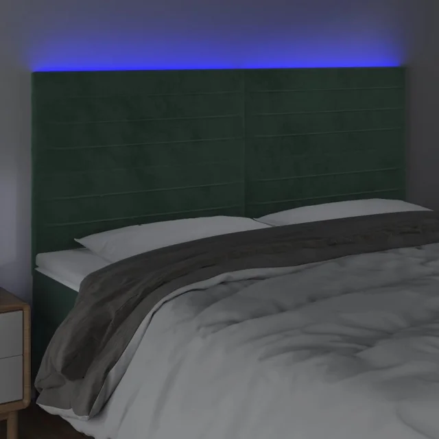 LED Posteljno vzglavje - Vzglavna omarica - Nočna omarica temno zeleno 160x5x118/128 cm žamet