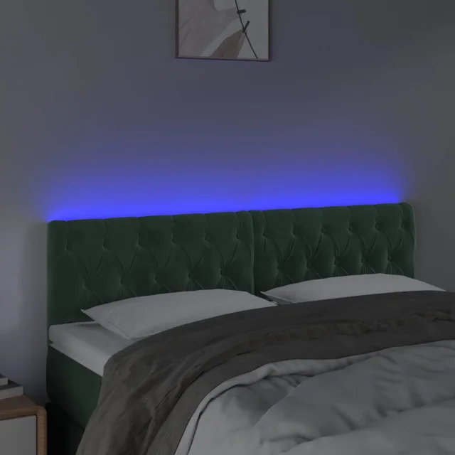 LED Posteljno vzglavje - Vzglavna omarica - Nočna omarica temno zeleno 160x7x78/88 cm žamet