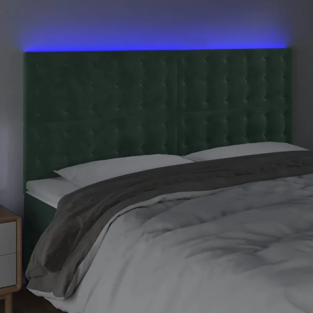 LED Posteljno vzglavje - Vzglavna omarica - Nočna omarica temno zeleno 200x5x118/128 cm žamet