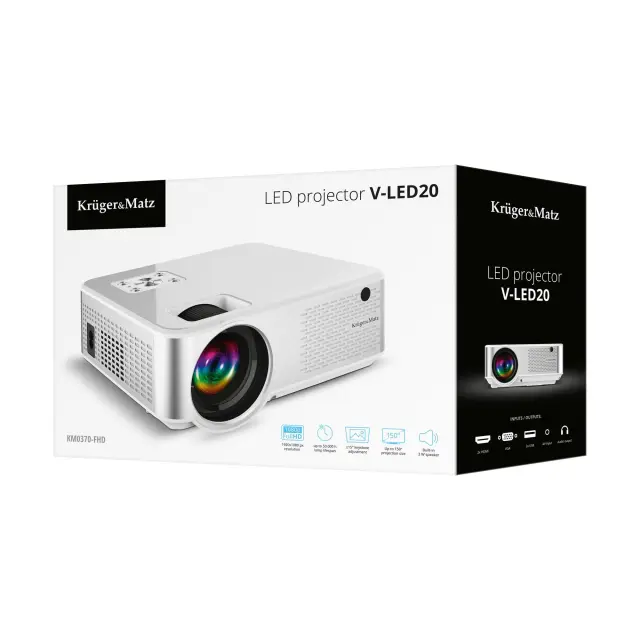 - Projektor, AV kabel (Jack 3,5 - 3x RCA), napajalni kabel, daljinski upravljalnik, vijak (za nastavitev kota podstavka)