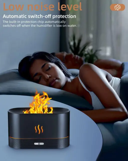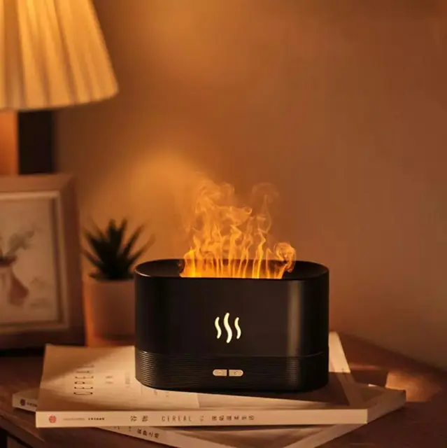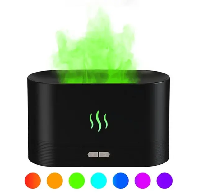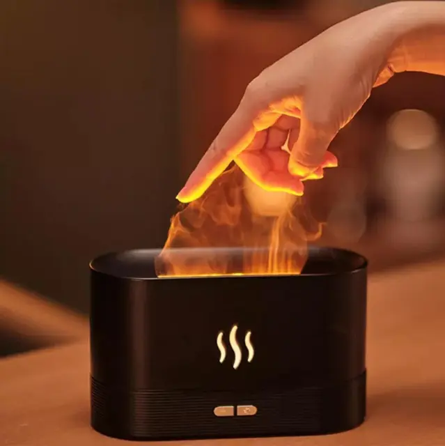 Kompakten in energijsko varčen vlažilec zraka s pisano RGB LED osvetlitvijo ozadja, ki posnema plamen.