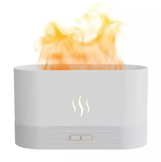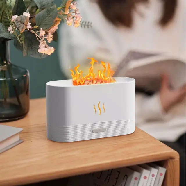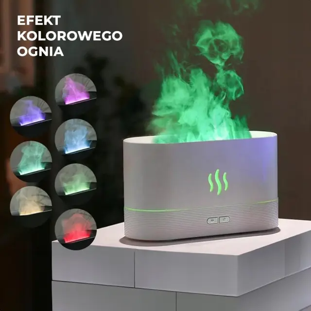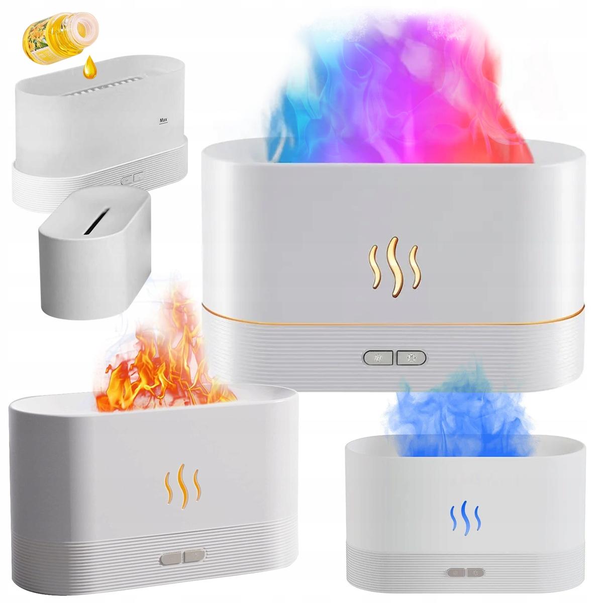 Kompakten in energijsko varčen vlažilec zraka s pisano RGB LED osvetlitvijo ozadja, ki posnema plamen.