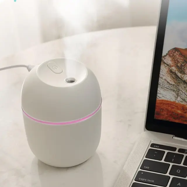 Zmogljivost 220ml omogoča dolgotrajno delovanje, medtem ko njegova kompaktna zasnova omogoča preprosto postavitev na mizo, nočno omarico ali drugo površino. Poleg vlaženja zraka lahko ta naprava deluje tudi kot difuzor eteričnih olj, kar vam omogoča, da v prostor razpršite vaše najljubše dišave.