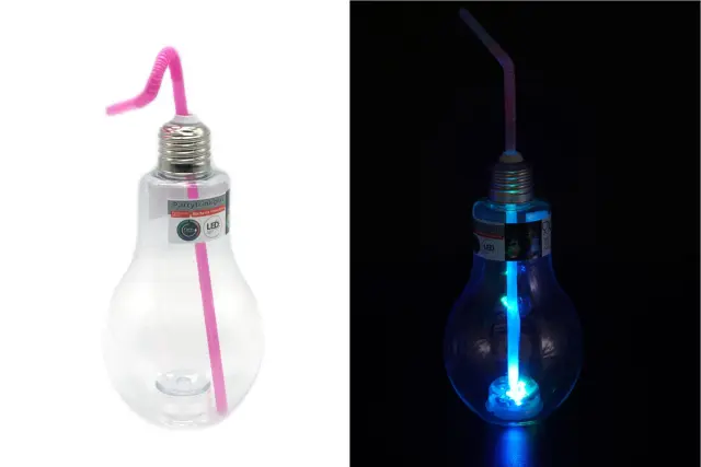 LED Party kozarec za pitje “žarnica”, 400 ml Menjava barve, 3x LED Material: Plastika Vtičnica: srebrna Baterije: 3xAG10 (priložene)