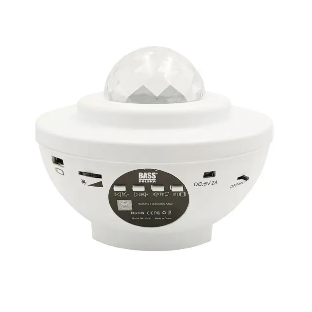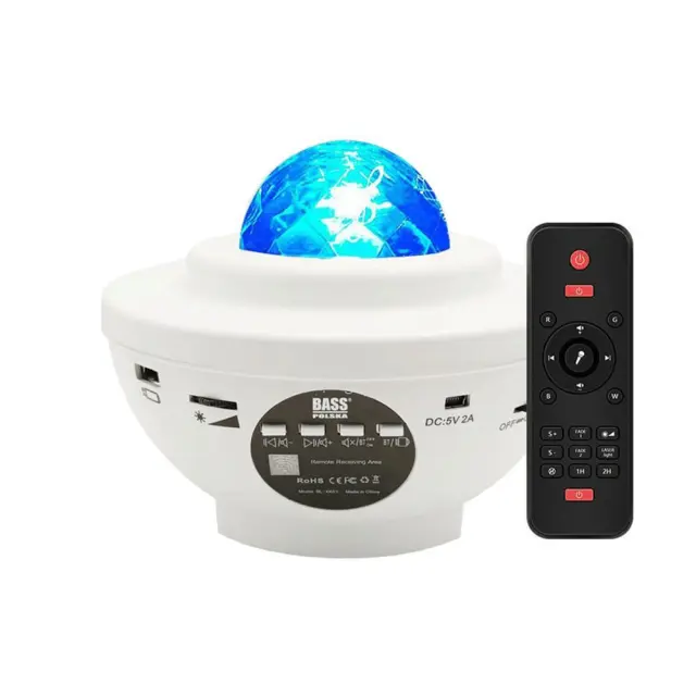 Upravljajte projektor neba Bass Polska s svojega kavča! Z daljinskim upravljalnikom lahko vklopite vse funkcije projektorja! Nočna svetilka s projektorjem ima kar enaindvajset načinov osvetlitve! Pritisnite gumb na daljinskem upravljalniku, da prilagodite svetlost svetlobe.