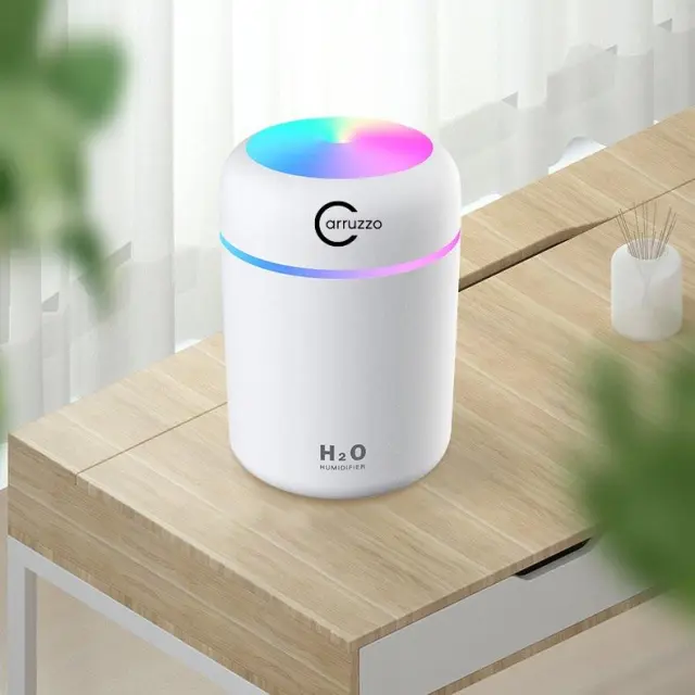 Namizni vlažilec zraka z napajanjem iz USB vtičnice. Je idealna rešitev v majhnih prostorih, opremljenih s klimatsko napravo, ki suši zrak ali kot nevtralizator neprijetnih vonjav.