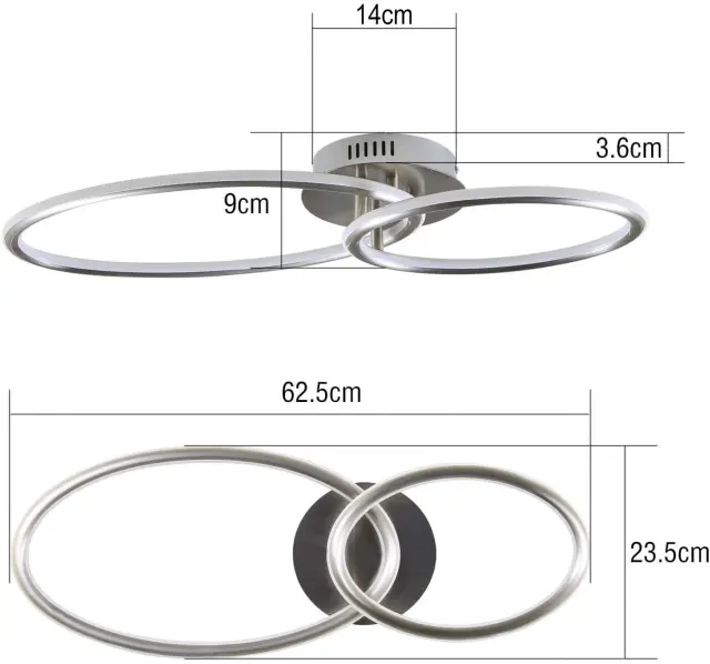 Tehnične specifikacije: Dimenzije: 62,5 x 23,5 x 9 cm; Napetost: 230 V; Moč: 29 W; Barva svetlobe: 3000 K, toplo bela; Zatemnitev: Ne; Material: Kovina.